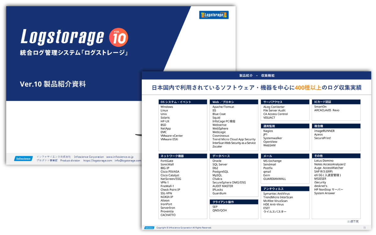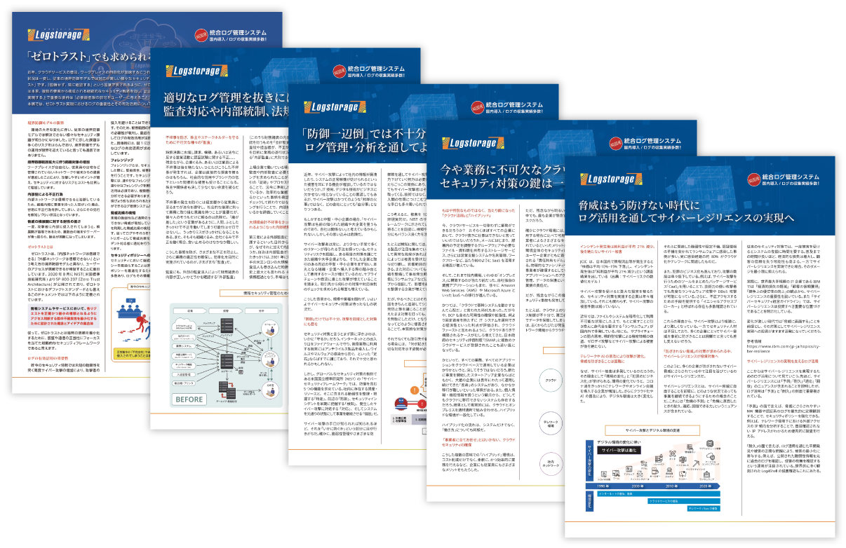 リプレイスケース集11選導入ケース集14選Logstorage導入ケース:標的型メール攻撃の分析・監視例ログってなに?サイバー攻撃対策におけるログ管理監査対応・内部統制におけるログ管理ゼロトラストにおけるログ管理クラウドセキュリティにおけるログ管理サイバーレジリエンスにおけるログ管理被害が拡大したインシデント事例の共通点セキュリティ製品カオスマップ